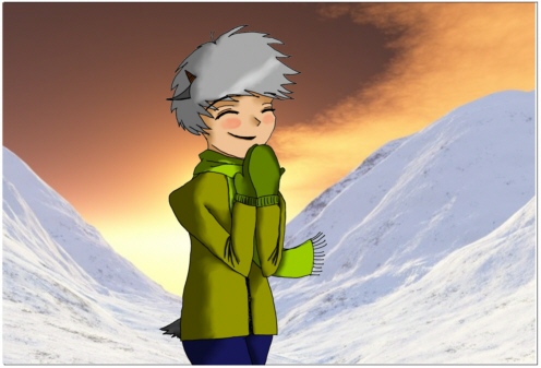 bei dem januar-bild ist mir als erstes aufgefallen daß das licht von der falschen seite kommt. der hintergrund wird von der untergehenden sonne von hinten beleuchtet, die figur hat allerdings eine ominöse lichtquelle von vorne und hinten schatten.