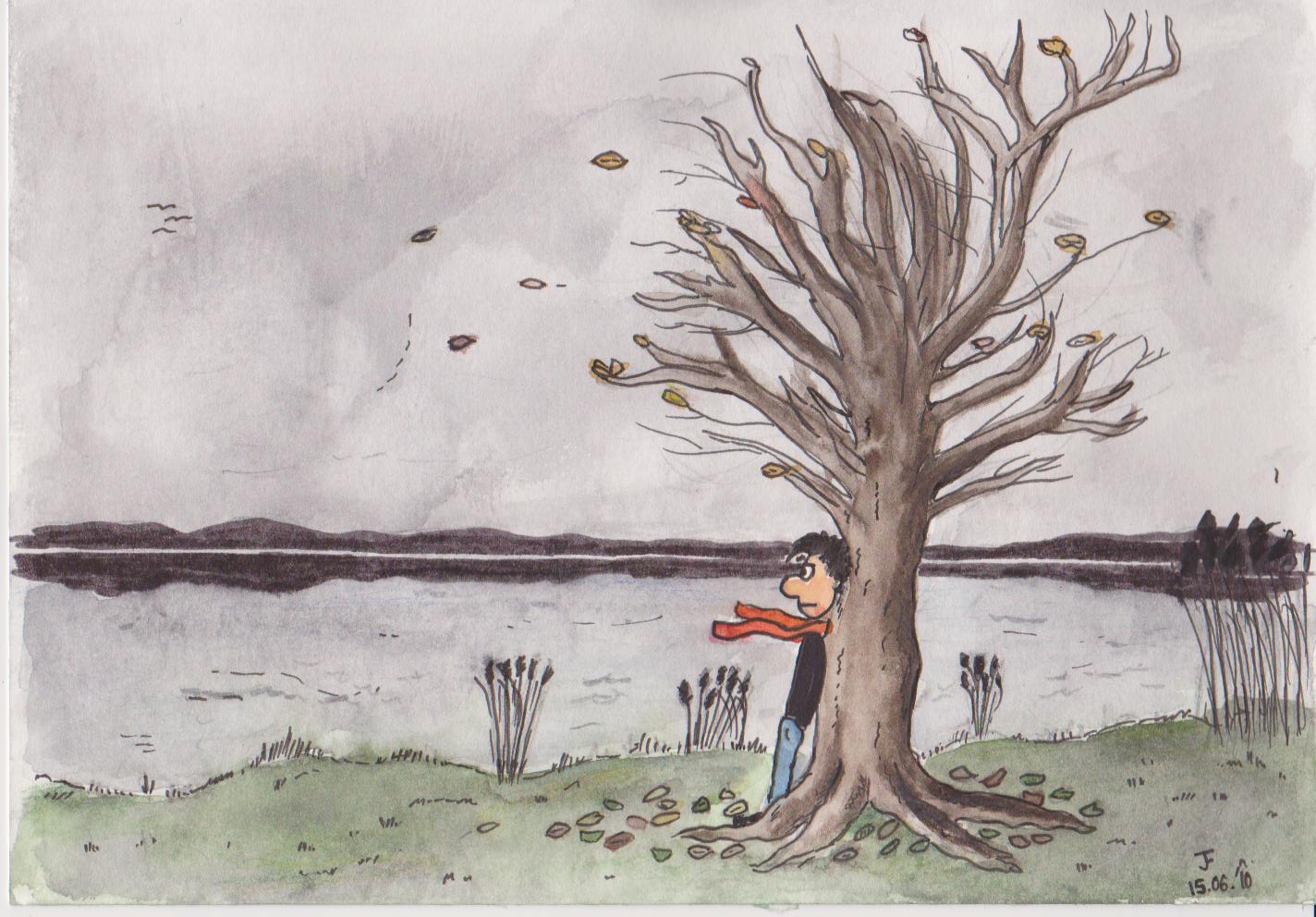 Bei dem Zweiten Bild aus der Schule hatte ich erst einen Mund gemalt, war mit dem dann aber nicht zufrieden und hab ihn mit Tipex oder so übermalt. Dann fand ich ihn auch ohne Mund ganz gut un habs einfach so gelassen.