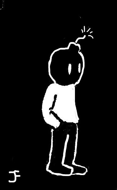 Das zweite Bild aus der Schule ist auch cool, nur schade dass der Mund mit Tipex oder so nachgezeichnet ist. (...) Mir hat zuerst der erste Bombenmann besser gefallen, aber als ich dann genauer hingesehen habe, gefiel mir der Körper des zweiten besser.xD(ein bisschen klugscheisserisch aber naaaja)
