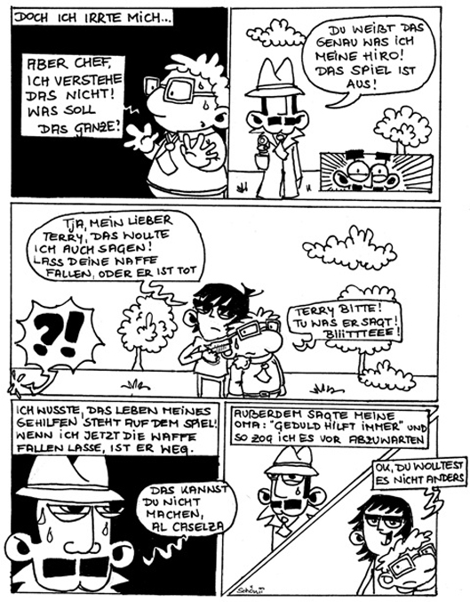 Ach ja: Das im zweiten Panel heißt "Merkwürdiges Ende".