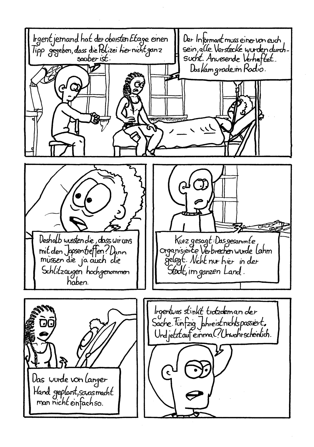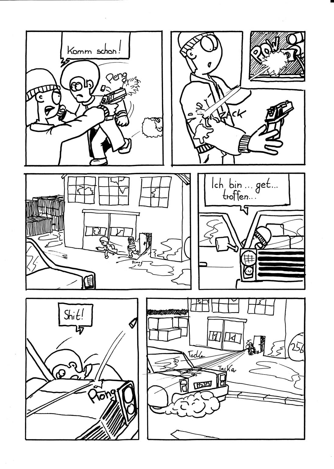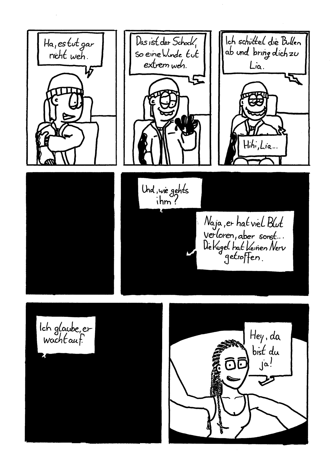 Man kann sich zwar denken, das der Typ wegen der Wunde bewustlos wird, den noch find ich den Übergang zu den Schwarzen Panels etwas unpassend.
