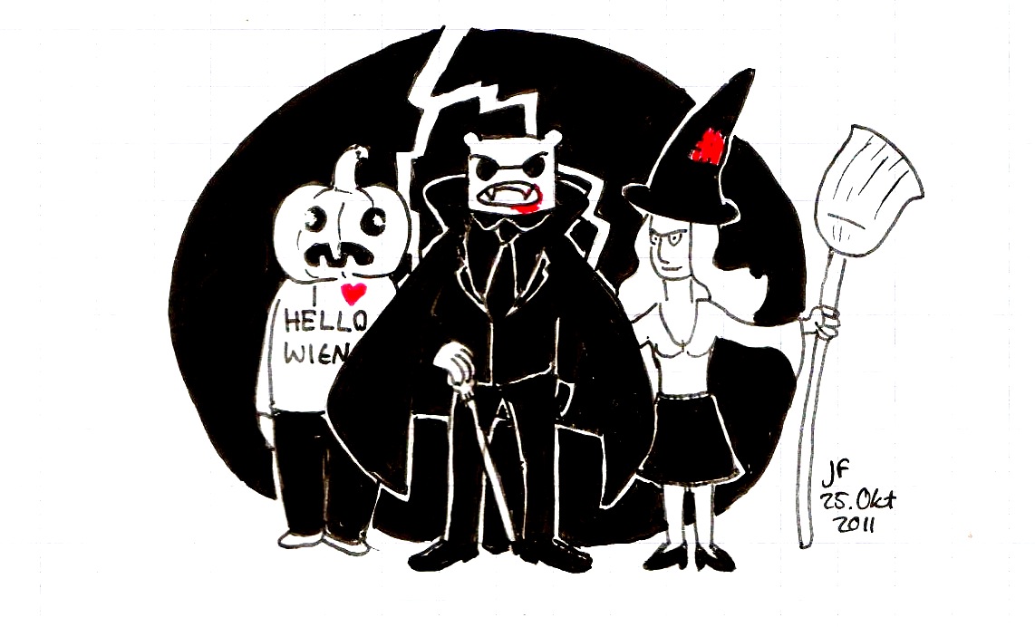Aufgabe: Entwerft euer Halloween-Party Outfit, möglichst originell, möglichst gruselig! Dazu am besten die passende Figur in entsprechender Szene!
