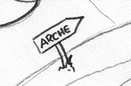 Im ersten Entwurf hatte ich noch Vorsorge getroffen, die Arche eindeutig zu kennzeichnen, habe das aber in der Reinzeichnung vergessen.