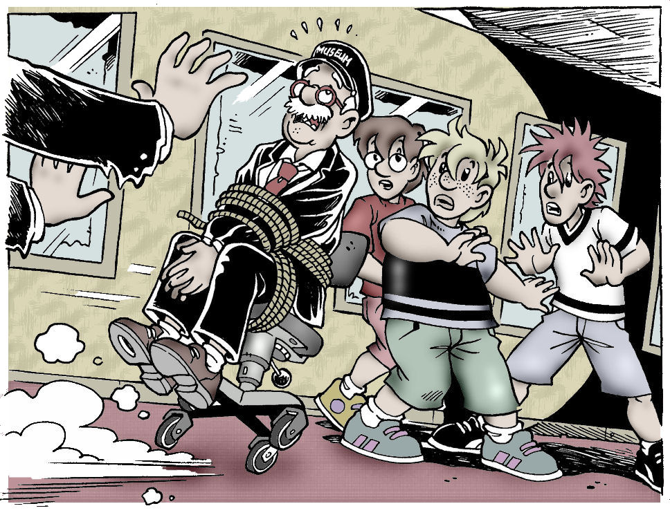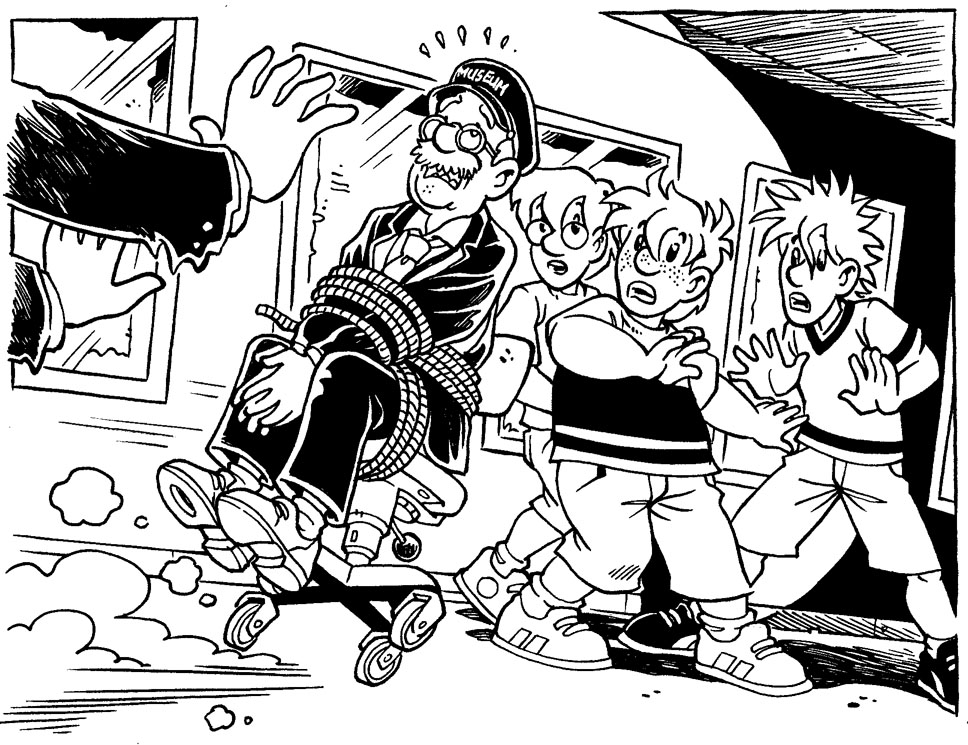 Dein Coloring ist schon mal ganz gut, Johnson, aber noch ausbaufähig, finde ich. Da kann man mit stärkeren Farbkontrasten und Hell-Dunkelstufen mehr Atmosphäre rausholen. Die mit dem Airbrush-Tool gesetzten Schatten auf Klamotten usw. empfinde ich als zu weich. Hier könnte man härtere Schatten setzen.