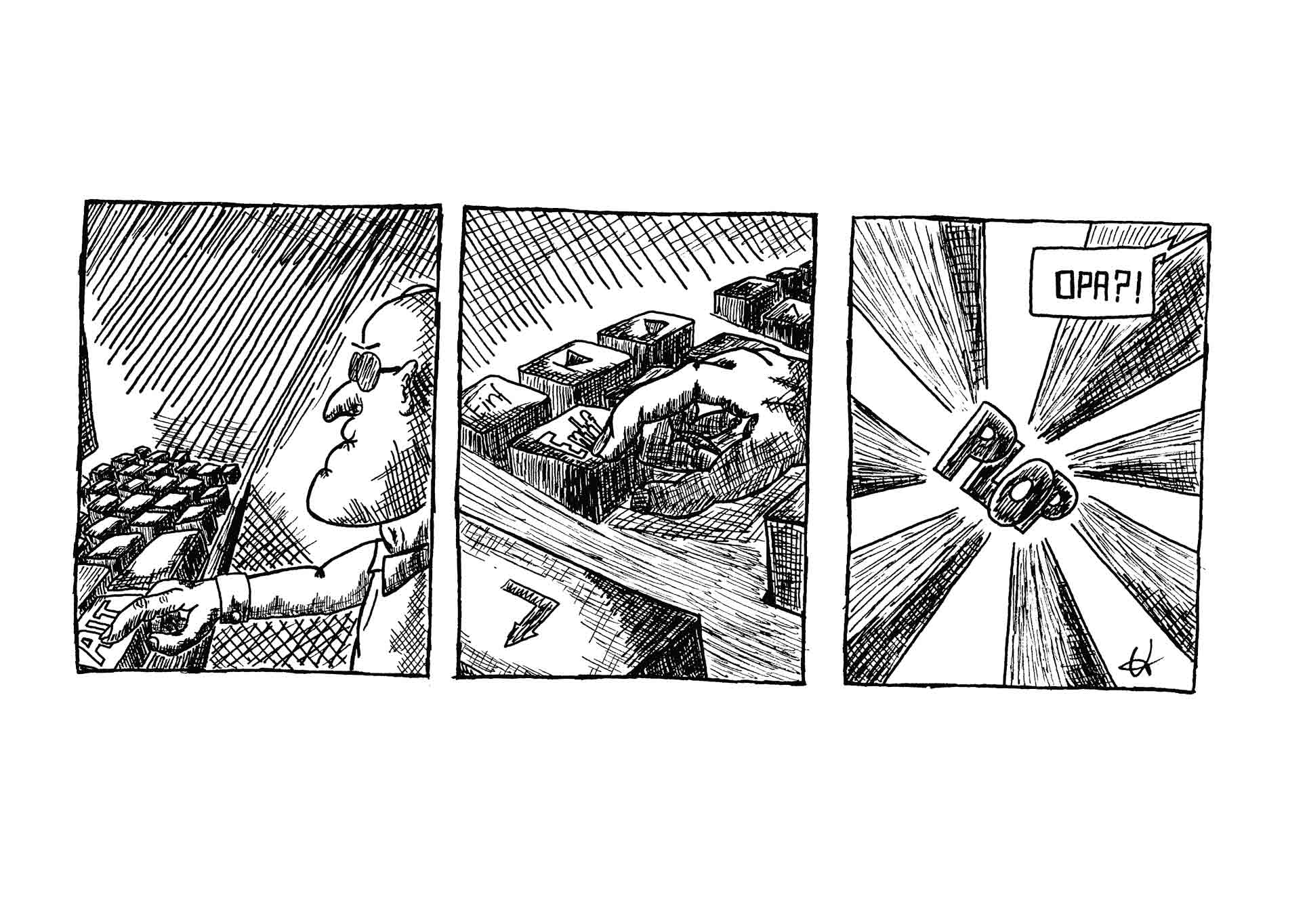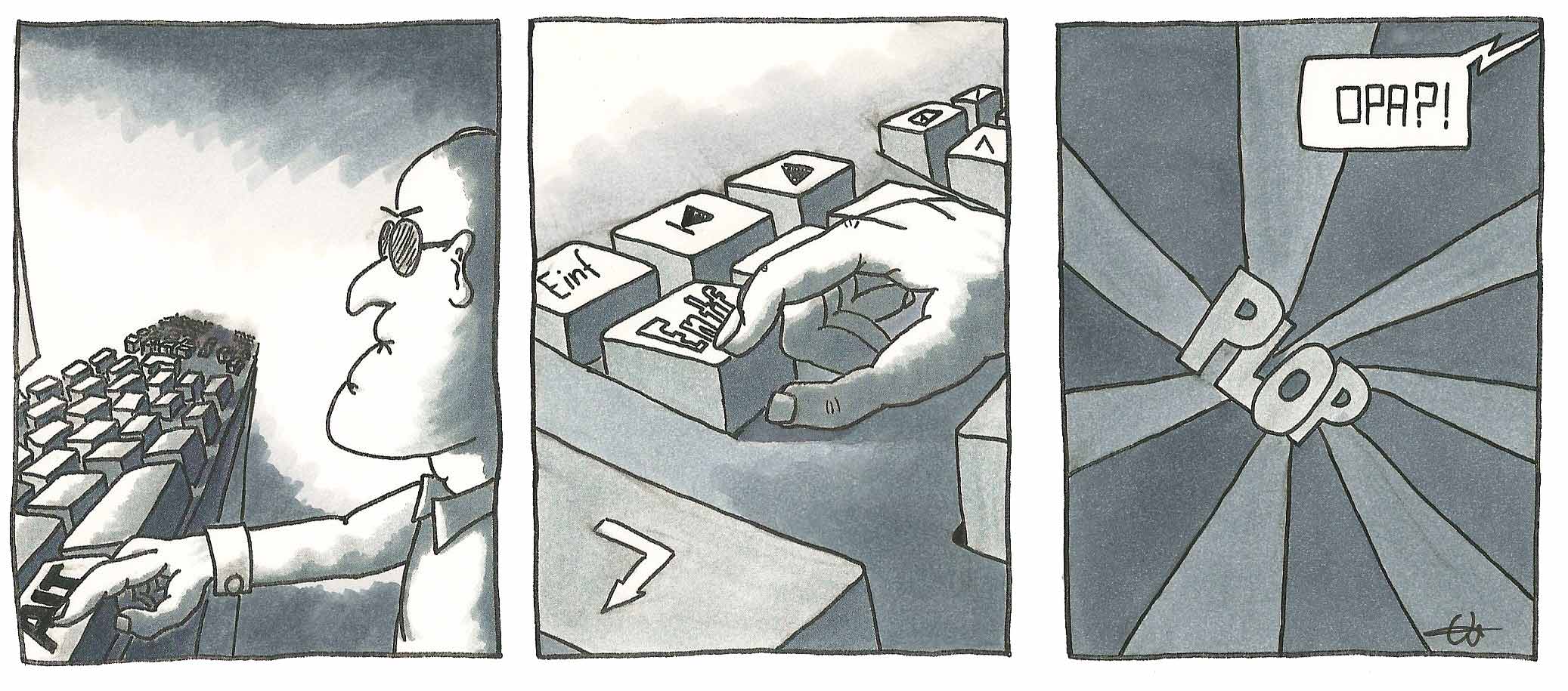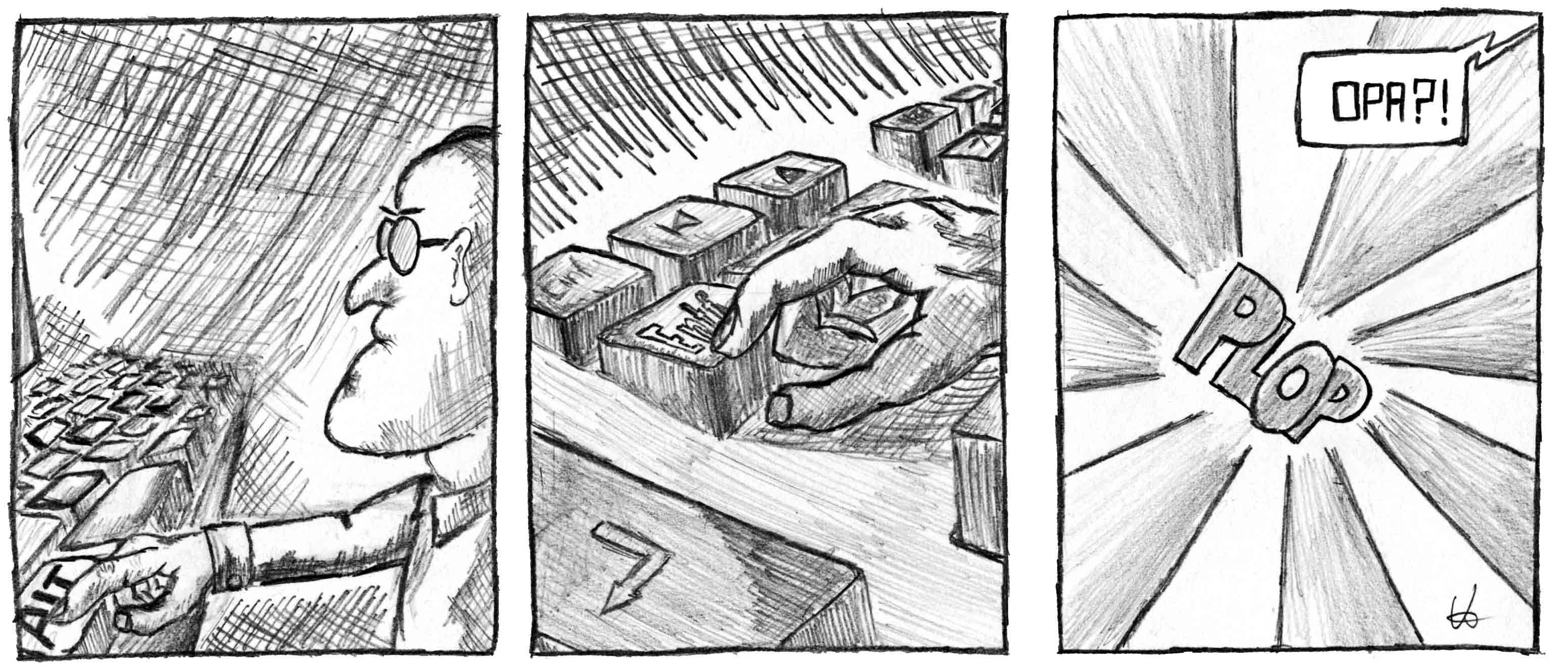 Nachher werde ich noch einen neuen Comicstrip posten, aber bis jetzt habe ich nur die Bleistiftzeichnung und arbeite gerade am Leuchttisch. Dummerweise muss ich die Arbeit daran gleich unterbrechen, weil ich heute noch meinem Nebenjob im Supermarkt nachgehen darf.