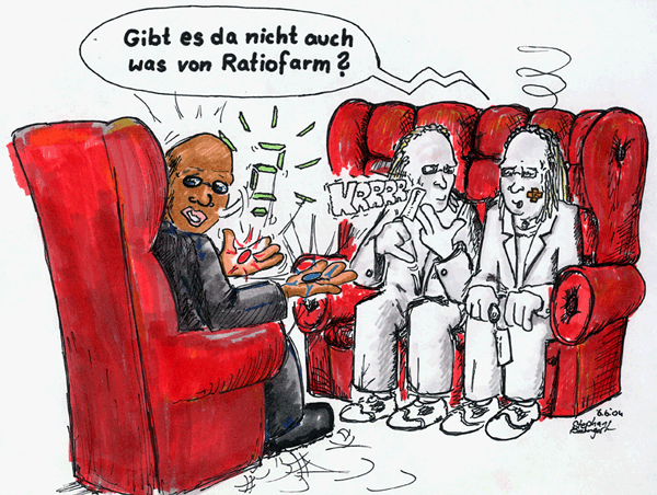 Dass die 2 Blassschnäbel auf der Couch weisse Anzüge tragen. Wirkt unfertig. Und bei der linken Armlehne der Couch haste rausgemalt. ( oder muss es rauscoloriert heissen?) ;)