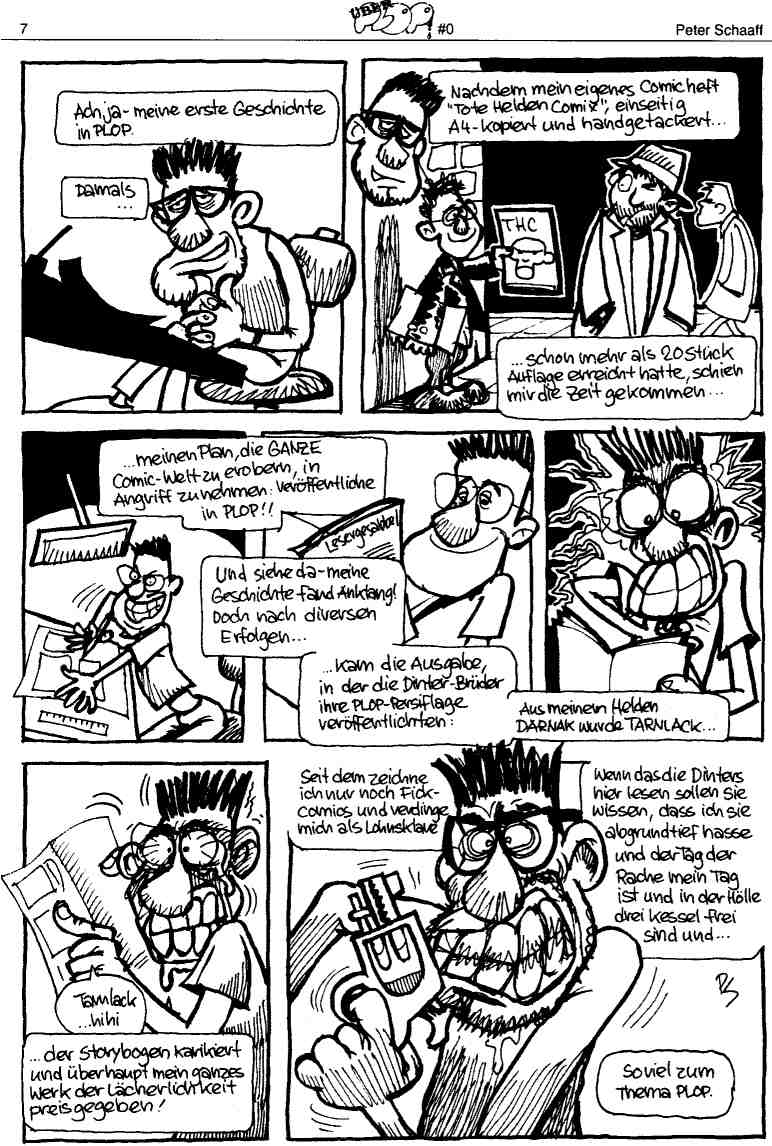 Nach ersten Veröffentlichungen in der Schülerzeitung und kruden Punk- Fanzines hatte ich in den frühen 80ern meine erste Geschichte - 'Nor' - in PLOP. Die wurde wiederum gut aufgenommen in einer Fanzine- Rezension in der Comixene. Das hat natürlich motiviert und ich wollte mein eigenes Ding machen! So habe ich die erste Tote Helden- Geschichte einseitig kopieren lassen, an der Seite zusammengetackert und als eigenständige Publikation in Umlauf gebracht (nachdem die ersten Seiten im Fanzine 'Stöhn' erschienen waren). In Umlauf bringen bedeutete Strassenverkauf, Tauschen mit anderen Fanzine- Machern und irgendwann der Vertrieb durch diverse kleinere Comics- Händler. Mit der Möglichkeit zu Verkleinerungen und beidseitigen Kopien wurden dann 'richtige Hefte' aus den THC mit an die 100 Stück Auflage - tätää. Eine Ausgabe habe ich später sogar drucken lassen später bei einer alternativen Druckerei hier in Düsseldorf.