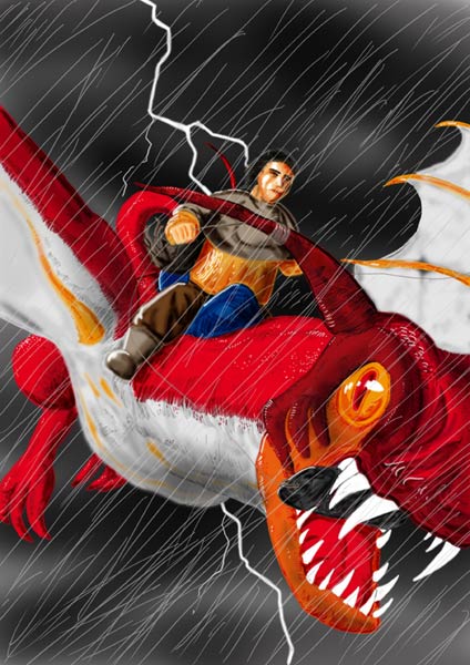 Hi, auch von mir ein herzliches Willkommen. Der Drache ist echt spitze geworden. Bei dem Reiter habe ich das Gefühl, dass seine Brust ein wenig zu weit gerutscht ist. Und er schaut mir doch eher dick und kurzgewachsen aus, aber das kann ja absicht sein ;)