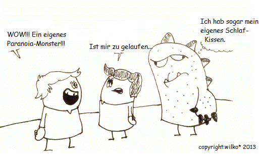 ;) Es geht weniger um den Sinn, als um den Unsinn. Ich arbeite gerne mit absolut Skurillen SItuationen. Die Gedanken des Paranoia-Monsters sollten die Szene noch Verwirrter machen.