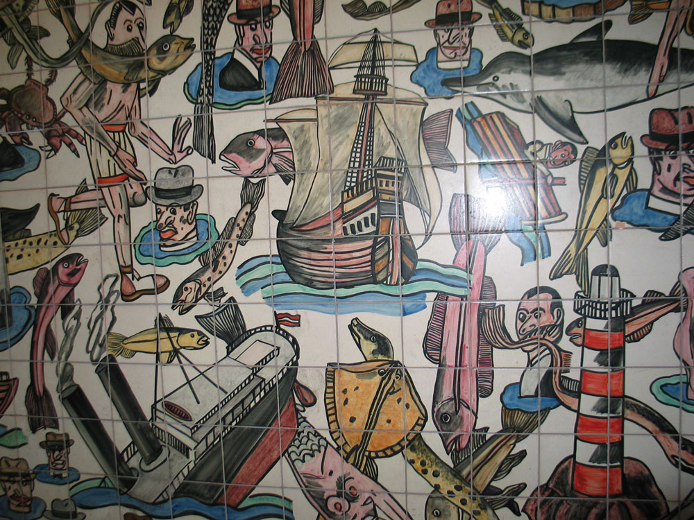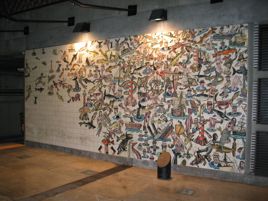 Hier ein bisschen Illusionsmalerei und Kachelbilder aus Metrostationen:
