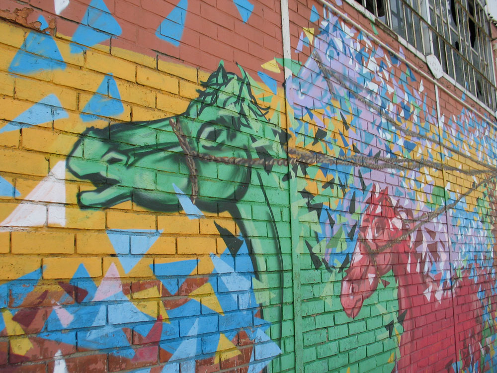 Und ich hatte schon Sorge, hier nur die tristesten Ecken der Stadt gezeigt zu haben. Da ich mich hier auf Fotos von Wandbildern und ähnlichem beschränken wollte, ist das ja auch naheliegend. Graffitis finden sich nun mal gehäuft in den vernachlässigten Gegenden und an verfallenden Gebäuden und Mauern.