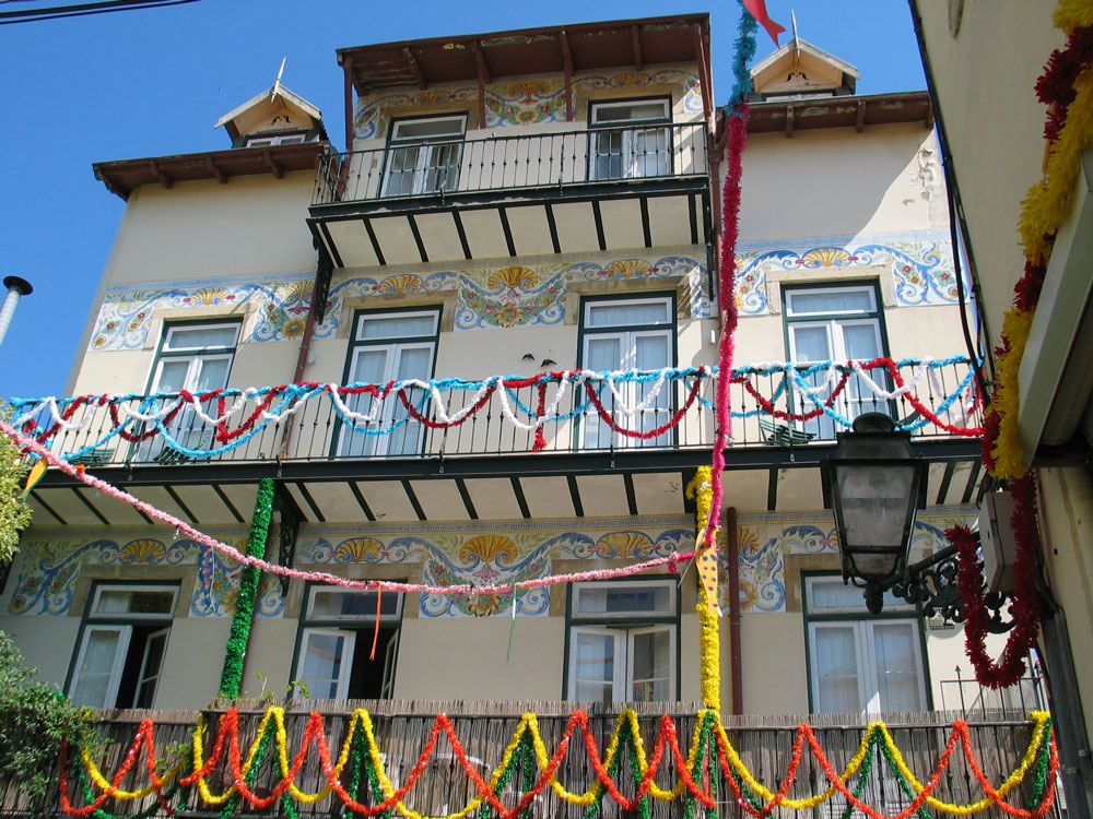 Wir haben wirklich Unmengen von Fotos gemacht, von Parks, Plätzen, Palais, engen, bunt geschmückten (wg. Fest zu Ehren des Stadtheiligen) Altstadtstiegen, schönen Buchläden, einer kleinen Bäckerei mit knallorangen Baisers in der Auslage... also wirklich idyllische Motive in Massen (sonst fotografiere ich fast nie, aber in Lissabon konnte ich nicht anders). Die Farben, das Licht, die Schatten sind in dieser Stadt wirklich besonders. Tatsache ist auch, dass viele Gebäude und Straßen sehr runtergekommen aussehen, was ihrer Schönheit aber interessanterweise nicht viel anhaben kann. Allein diese Vielfalt an Kacheln (Azulejos) an den Fassaden der Häuser überall ist großartig.