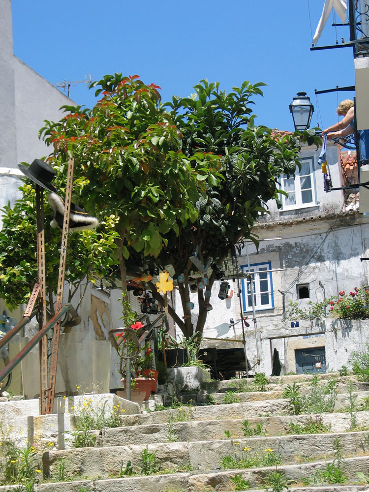 Heiß war es jetzt, Anfang Juni, auch und ganz schön laut. Schon vor 6 Uhr begann in Alfama am Tejo-Ufer, wo wir wohnten, das tosende Leben auf der Straße, und Flugzeuge donnerten schon die ganze Nacht über uns hinweg. Geschlafen haben wir trotzdem gut, vielleicht, weil Spaziergänge in Lissabon einer Eifelwanderung nicht unähnlich sind: es geht immer rauf und runter… Wir waren abends echt geschafft. Es wehte zwischendurch aber auch immer mal ein frisches Windchen und die Nächte waren immer angenehm kühl. Der Atlantik ist ja nicht allzu weit entfernt.