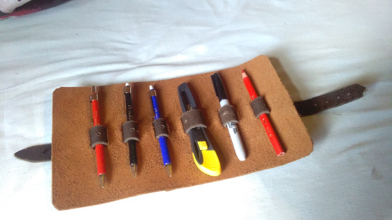 Das Rollmäppchen hab ich immer in der Berufsschule dabei, ist alles drin was der Schlosser braucht. Druckbelistifte (0,35 ; 05 ; 07) Filzmarker, roter Buntstift. Der Cutter ist optional, den brauch ich nicht unbedingt, aber der Zirkel hat leider nicht gepasst.