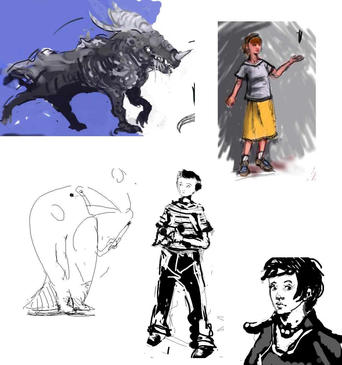hübsche skizzen übrigens, vor allem das nashornvieh. irgendwie erinnert mich das gesicht rechts unten an by moon alone... aber frag mich nicht, warum.
