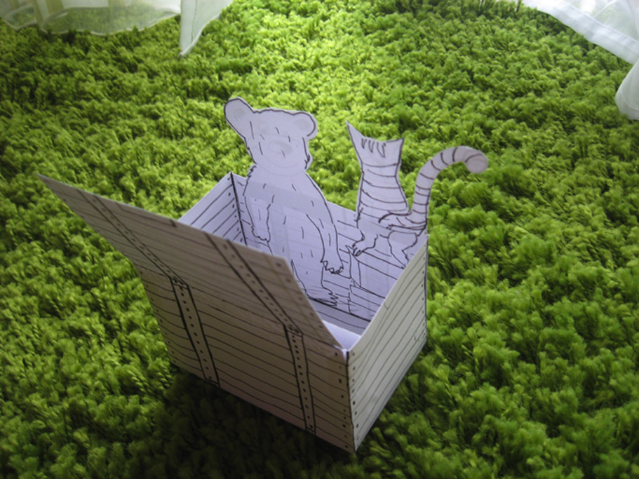 Ich dachte, das sei ein Foto, in das die Zeichnung einer Kiste hineinmontiert sei. Aber Du sagtest ja: 3 D!