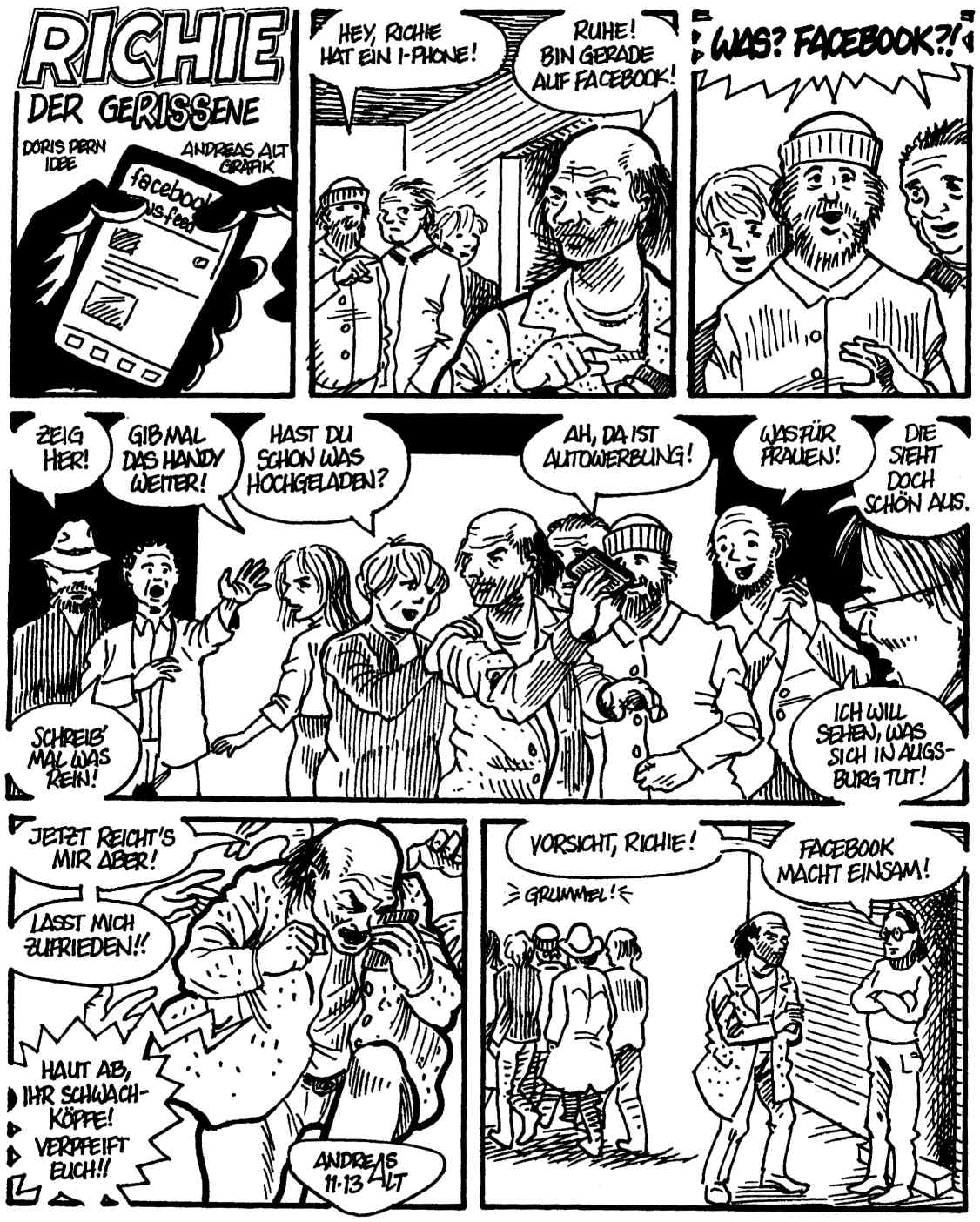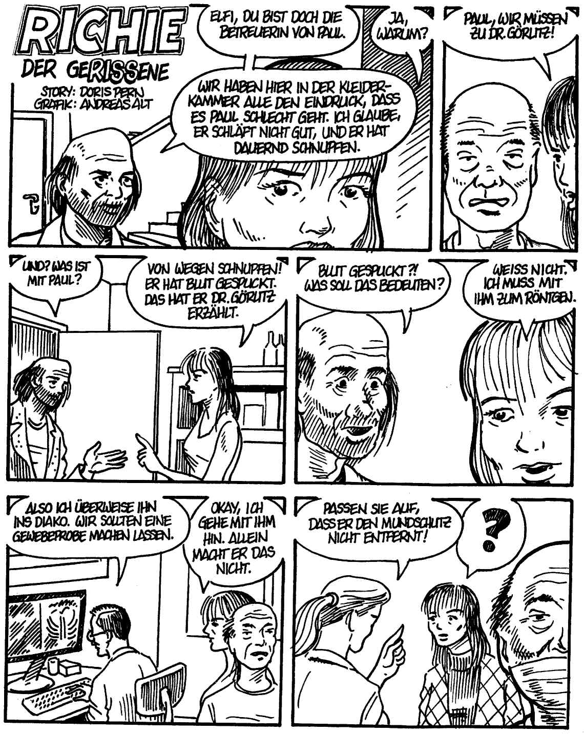 Nach längerer Zeit mal wieder ein "Richie"-Comic von mir. Der ist fürs Straßenmagazin "RISS", spielt daher in der Obdachlosenszene. (Eine wahre, nur wenig bearbeitete Geschichte.)