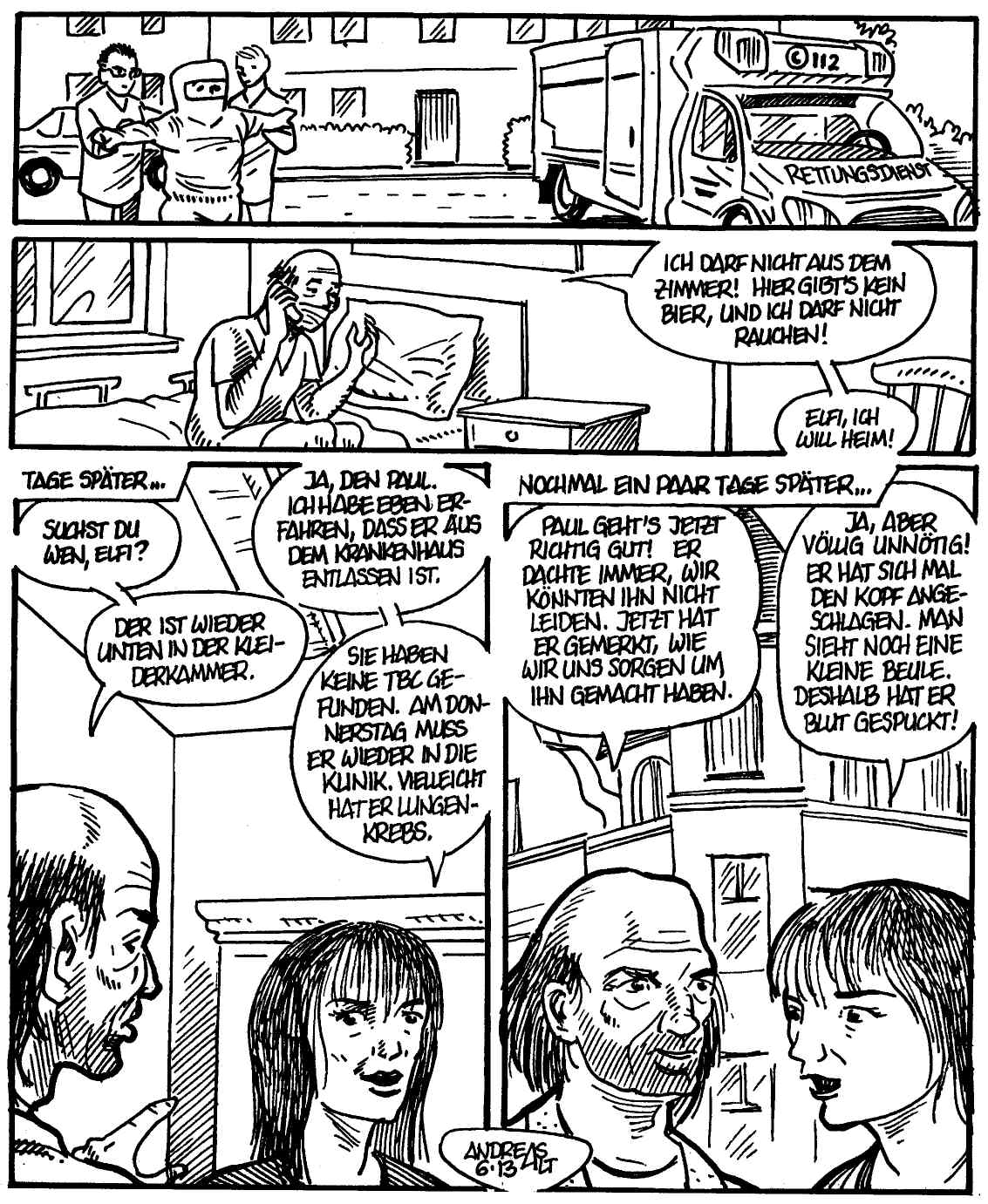 Vorhin habe ich übrigens nochmal mit "Elfi" telefoniert: "Paul" gefällt der Comic, den Sozialarbeitern vom Sozialverband SKM ebenfalls, und vor allem dem Arzt von Seite 1 unten hat der Comic sehr gut gefallen. Sie hat ihn allen gezeigt.