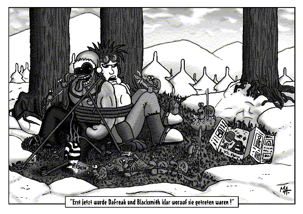Also ist jetzt unentschieden, häh? Die letzen Bilder sind wieder saugut, vorallem die Nahaufnahme vom Freak. Das einzige was ich zu bemängeln habe, ist eher von der klugscheisserischen Sparte nämlich: Ähämm, "eventually" heisst auf deutsch "schliesslich" und nicht "eventuell", jawohl. ;)