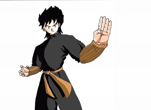 der kopf schaut nach dragonball aus (son gohan vielleicht ?), der körper von naruto (rock lee oder sensei gai) ... das bild is sehr gelungen die schatten hast du gut eingezeichnet finde ich !