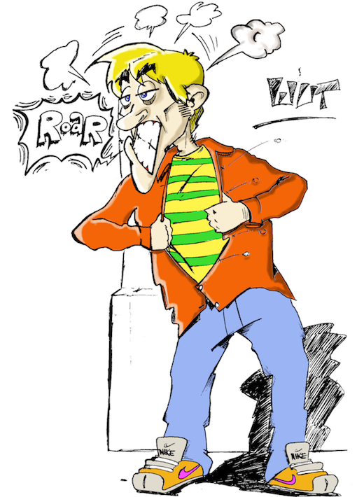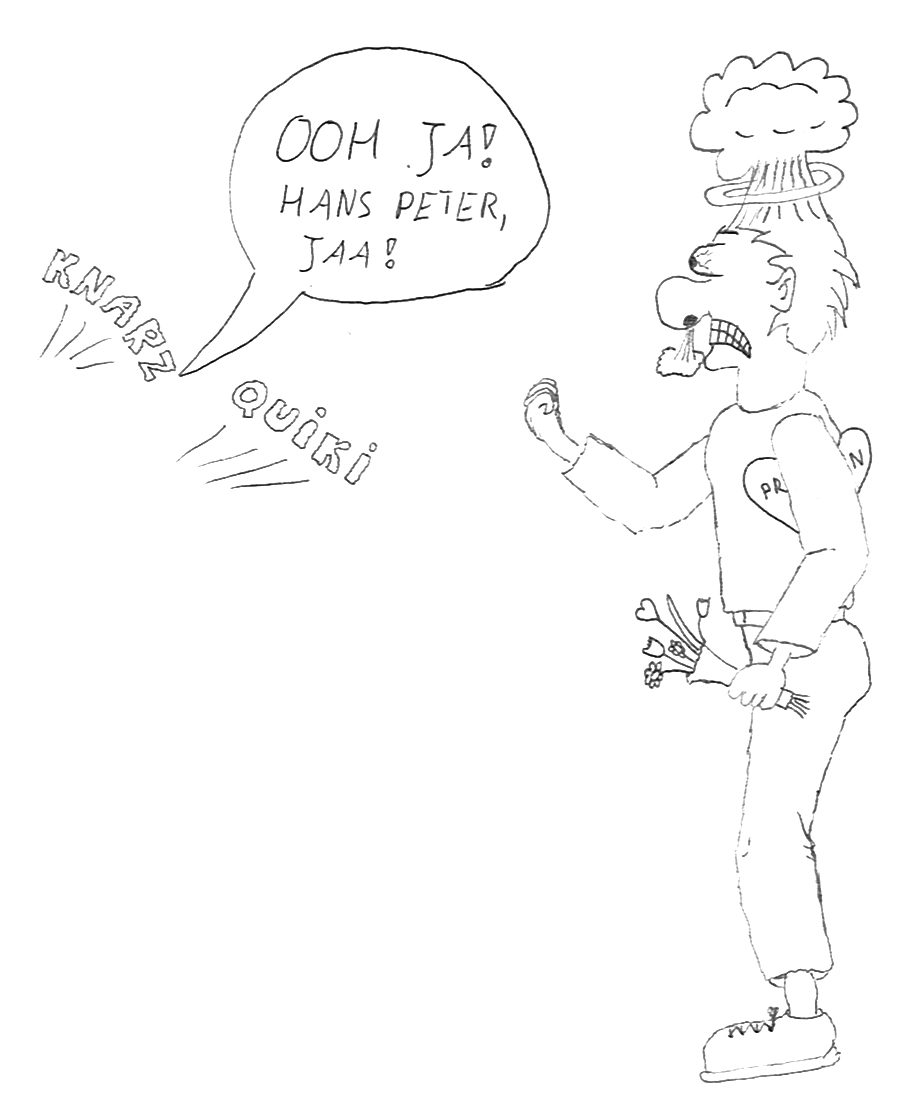 ICh mach immer einen weit aufgerrissenen Mund und Ader natürlich mit getackter Sprechblase.