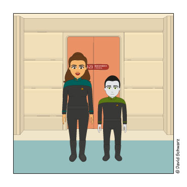 Die Frage verstehe ich nicht ganz. Genau das habe ich ja vor. Um mit der Borgkönigin zu sprechen: Du siehst einen Widerspruch, wo keiner ist. Eine Parodie oder auch eine Hommage ist ja zwangsläufig von der Vorlage inspiriert, geht aber immer auch darüber hinaus.Dann stellt sich mir aber die Frage: Warum verfremdest Du Deinen Comic nicht noch ein bißchen mehr, machst eine eigene lustige Serie daraus und läßt Dich nur von TNG inspirieren?