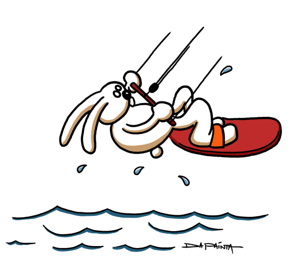 Im Zusammenhang mit einer Auftragsarbeit ist dieser Hase (beim Kitesurfen)