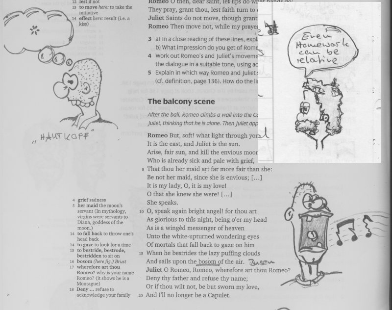 ... wen's interessiert: Der unwichtige Text im Hintergrund ist von Shakespeare und in der Sprechblase steht: "Even homework can be relative" (Ein kleiner Gruß an meine Englisch Lehrerin)