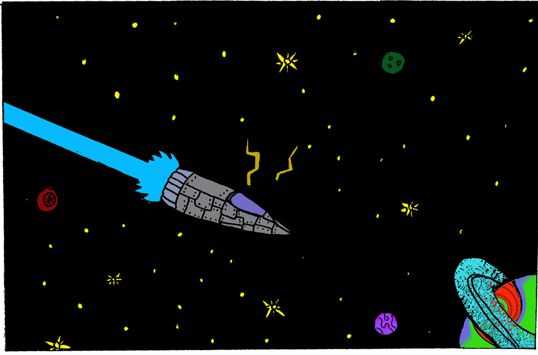 Super! Erinnert mich irgendwie an "Per Anhalter durch die Galaxis"! Sehr cool!