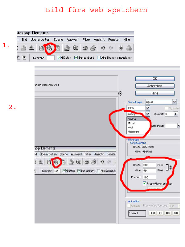 Speichern als JPEG, Qualität mach ich immer "Stufe 8"