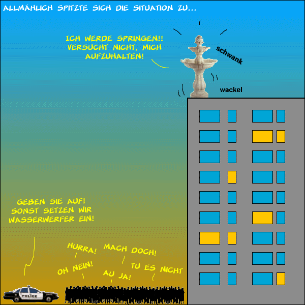 Ich hätte es besser gefunden, wenn alle "Gaffer" einstimmig gewollt hätten dass er/es springt. (ausser der Polizei natürlich)