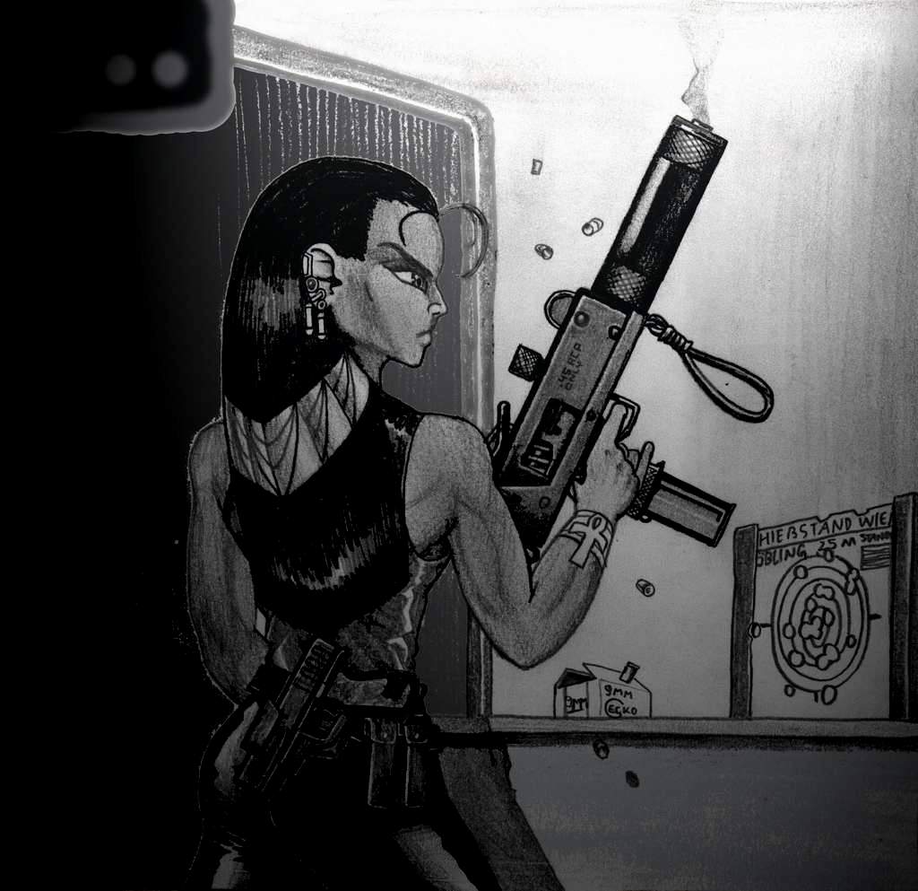 :P allgemein würde ich empfehlen schwerpunkte auf antomie und perspektive zu setzen,das schwebt mir bei deinen bildern vor.für alle art schriften ein bildbearbeitungsprogramm zu benutzen, es gibt so viele geile schrifte und ergebnis sieht einfach besser als selbstgezeichnete beschriftung aus.
