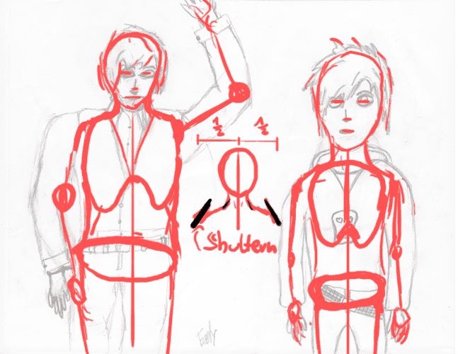 Da du scheinbar probleme mit schultern hast ;), hab ich in der mitte ne kleine demonstration erstellt wie man die recht einfach konstruieren kann, fang einfach mit den <schwarzen> linien an, die du queer platzierst, und daran richtest du die schultern dann aus :) (so mach ichs immer ;))