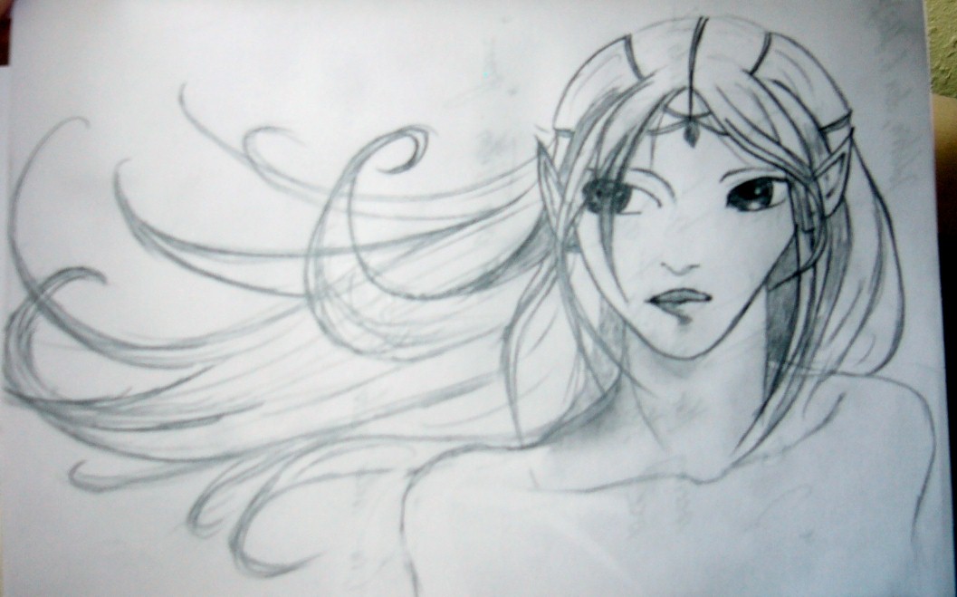 Ja der Hals ist ein wenig breit geraten, für ne Frau müßte er viel schlanker. Schöne Zeichnung, besonders der Mund sieht sehr echt aus. Oben am Haaransatz, hm... wie beschreib ich das jetzt. Also du hast ja so nen Scheitel gezeichnet oder zumindest angedeutet, der dürfte aber nicht an dieser Stelle sein, so weit unten müßten die Haare anders fallen.