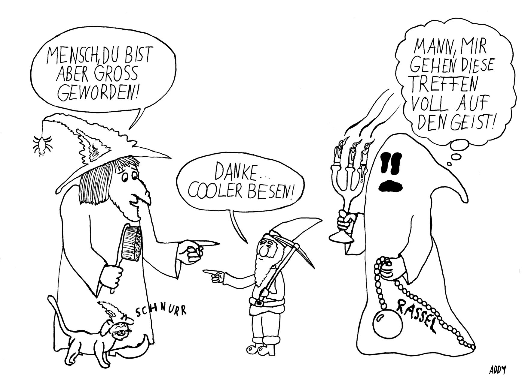 Zeichnerisch find ich wird es immer besser. Der Geist und der Kerzenständer gefallen mir schon recht gut. Die Hexe auch. Der kleine Niklaus ist noch nicht ganz so gelungen. Seine Füße stehen irgendwie falsch. Die scheinen mir aus der falschen Perspektive gezeichnet.
