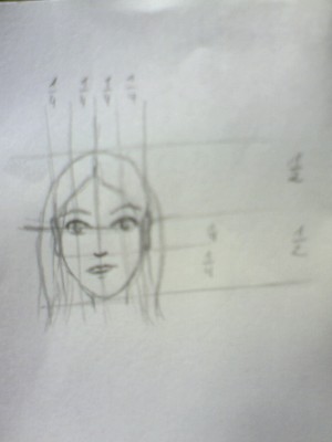 Also von anfang an. Zeichne erst einmal die Grundform des Kopfes. (so steht es in jedem tutorial, auch in Kims buch, was echt Klasse ist, da lernt man echt viel!) dann zeichne Hilfslinien ein. Ich habe dafür ein Bild angehängt (die schlechte qualität kommt von meiner Handykamera ^^).