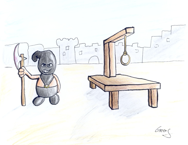 Heute kam mir die Idee, kleine Cartoons mit dem unten gezeigten Henker zu machen.