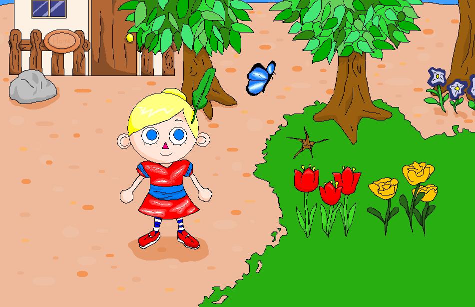 Die Perspektive des Mädchens und die der Blumen ist sogar haargenau diesselbe, was das ganze so ein bisschen verschroben aussehen lässt, ist die große Grasfläche und die Wurzeln der Bäume. Die hätten auch bisschen flacher sein dürfen und den Blumen hätte ich auch noch einen Schatten verpasst; ansonsten find ich die Perspektive gar nicht so schlimm. Wer braucht die überhaupt?