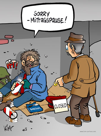 - Mit dem Posting seines Cartoons im Comiczeichenkursforum stimmt der Zeichner einem einmaligen, kostenlosen Abdruck seines Werkes in den Obdachlosenzeitungen zu. Bei RISS wird übrigens der gesamte redaktionelle Inhalt ehrenamtlich erstellt.