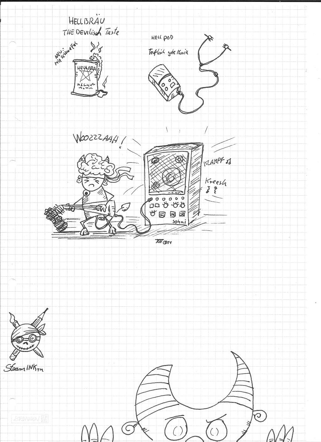 Die Teufelchen sind einfach, da habe ich sogar ein paar oldschool animationen herum fliegen ( wollte mal ein grafikatventure machen ... aber irgendiwe hatte ich die zeit nicht dazu) Nein die Schwebt nicht, das Liegt daran das die Kopien recht hell geworden sind und der Scanner dan nochmal sein Übriges dazugegeben hat ( hatte auch nicht den nerv an dem Tag die Digital nochmal nach zu zeichnen) Aber man kann das feine Spinnennetzt nur im Orginal richtig deutlich sehen :D
