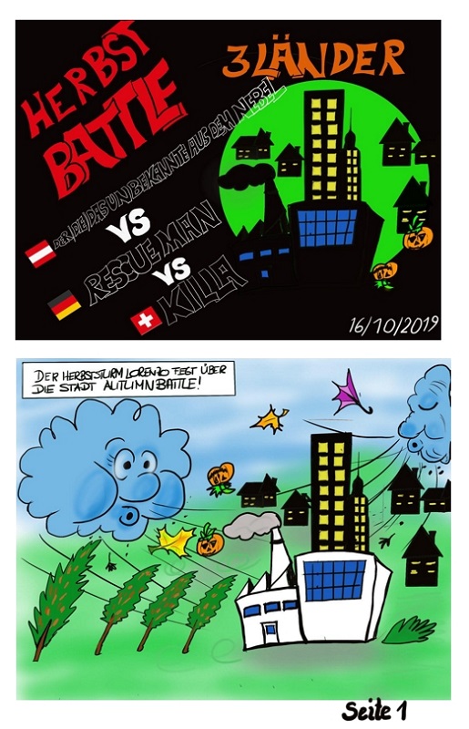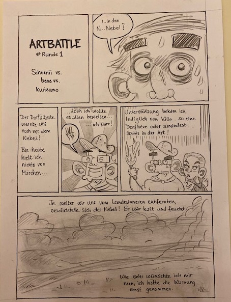 Danke für dein Feedback.Dies war meiner erster Battle in dieser Form. Ich wollte die Kämpfer so ähnlich wie möglich zeichnen, damit sie auch wiedererkannt werden. Etwas künstlerische Freiheit habe ich bei den Farben bei Rescue Man vorgenommen und beim Schönii's Figur habe ich die Strukturierung nach künstlerischer Freiheit angepasst. Ich bin wirklich noch an meinem Stil finden. Ich habe viel Zeit in die Story investiert, was ich auch sehr wichtig finde. Ich habe nur zwei Panel pro Seite genommen, damit man es besser lesen kann. Bei meinem ersten Battle 2018 "Märchen" Link, konnte man den Text nicht gut lesen. Da die Grösse der Anhänge in diese Forum eingeschränkt ist, habe ich mich entschieden nur zwei Panel pro Seite zu nehmen. Zuerst hatte ich eigentlich 3 Panel pro Seite geplant, :)