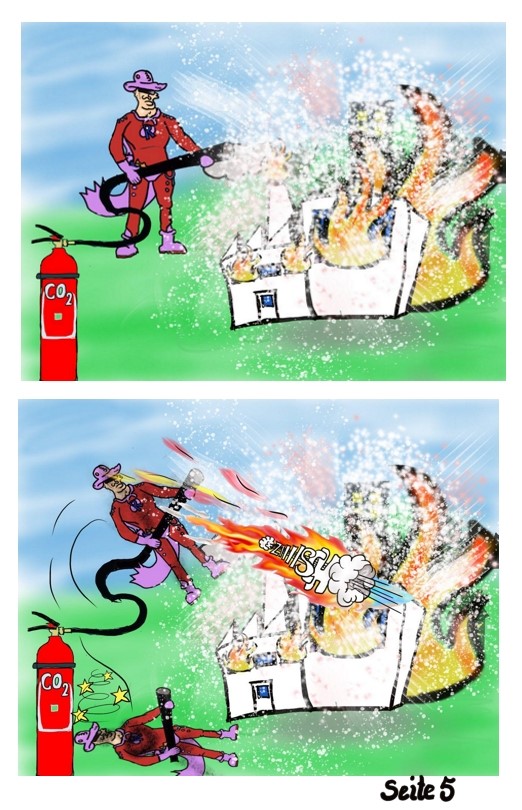 Was Kopf- und Armgröße angeht, gebe ich deiner Kritik Recht. Das fällt mir z.B. gerade im 4. Panel der 2. Seite auf, wo ich als Leser ja eigentlich gerade das von den Händen Festgehaltene sehen soll, das aber (samt Händen) sehr klein ist. Abgesehen davon scheint es mir so, als ob du den vom Betrachter entfernteren Arm vom Rescue Man gerne recht weit unten ansetzt - wenn man da die Verbindung zur Schulter zeichnen würde, sähe das wohl auch für eine Cartoonfigur komisch aus (Seite 1, letztes Panel; Seite 2, zweites Panel).