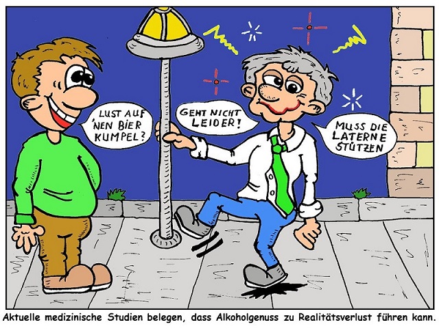 Damit der angeschwipste Herr sie stützen kann, müsste die Stange weiter nach unten - näher an die Füße der Figuren - verlängert werden.)