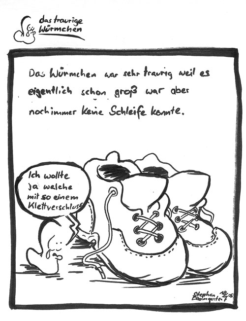 Das neueste Würmchen ist wieder super! Ich hatte auch immer lieber Klettverschluss, und war manchmal traurig weil andere Streber Kinder viel früher schuhe binden konnten als ich ;(:D