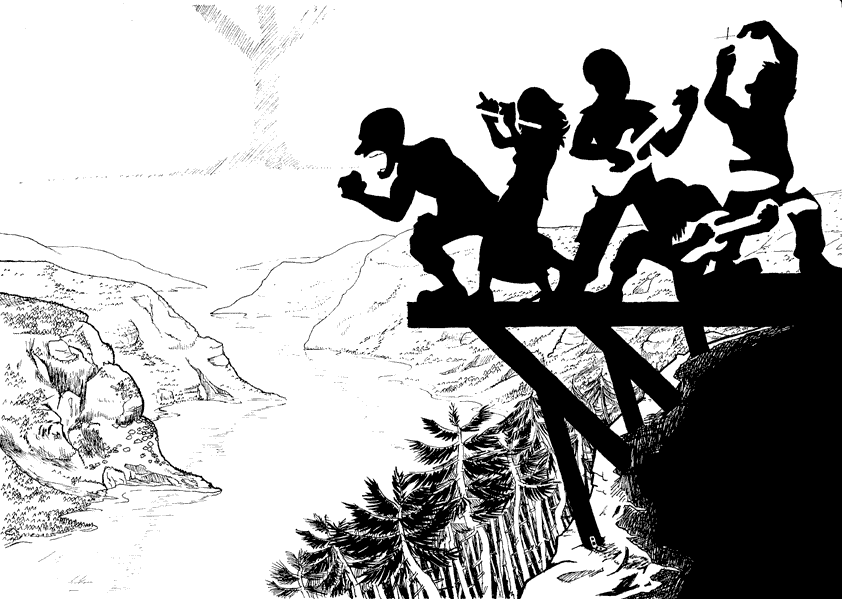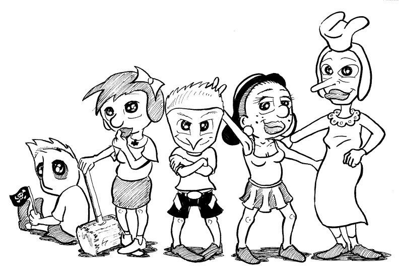 Riesenlutscher gibts sicher irgendwann. Ich hab jetzt das Script und mal die Figuren gezeichnet (das Original gibts hier http://toonsup.com/artist/gallery.jsf?pageId=320). Das Ergebnis ist hart anders als gedacht: