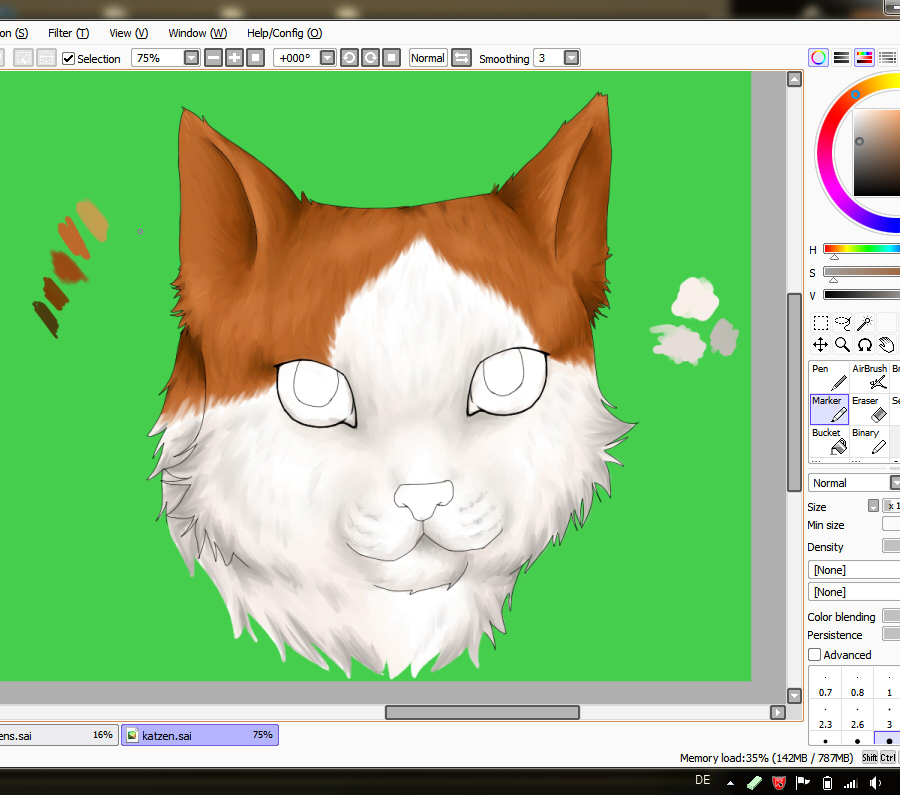 Hast du die Haare der Katze am Computer so gut hinbekommen oder wie hast du die Haare gezeichnet?