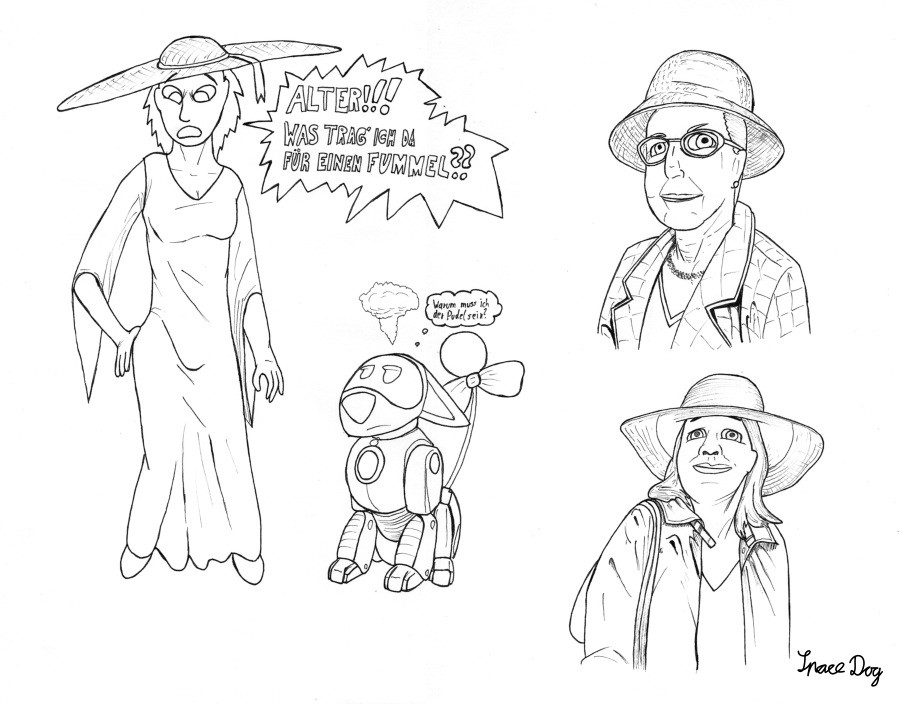 Kleidungsmäßig finde ich 90% der Kleidung super gelungen. Nur den Hut von der linken, der schaut nicht so richtig "3D-mäßig" aus, also nicht plastisch genug