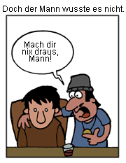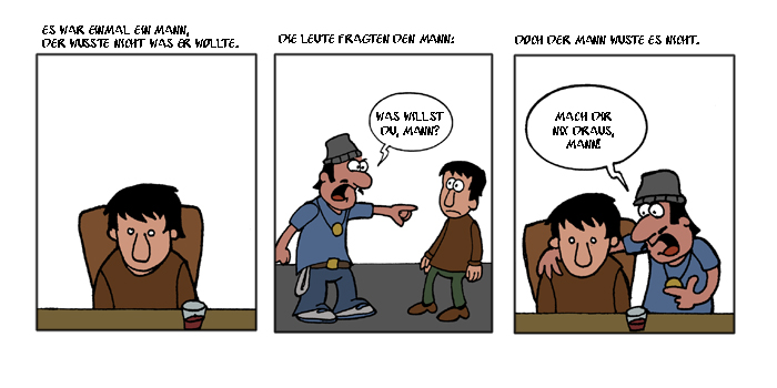 Außerdem ist die Schrift ungeschickt. Zwar besser als sonst (die Comic Sans hattest du doch immer, oder?), aber immer noch nicht so gut. Und drittens sind die Augen im zweiten Bild von dem Typen anders als im ersten und dritten. Aber sonst...