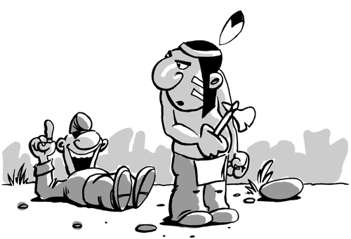 - Indianer: "Mann, so ein Dickschädel. Mein Thomahak hat voll nen Riss bekommen und das Bleichgesicht lacht auch noch..."