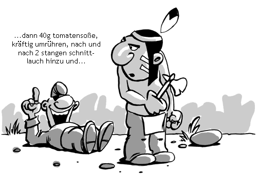- Indianer: "Scheiß neumodischer Kram. Bei den alten Thomahaks war der Skalp wenigstens direkt beim ersten Versuch weg."